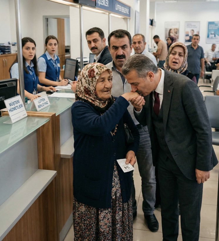 Önümde saygıyla eğildi. Tüm şubenin şaşkın bakışları altında elimi tuttu ve eğilip öptü. "Hoş geldiniz efendim," dedi sesi titreyerek. "Bizzat kapıda karşılamam gerekirdi, bağışlayın. Buyurun, özel odaya geçelim."