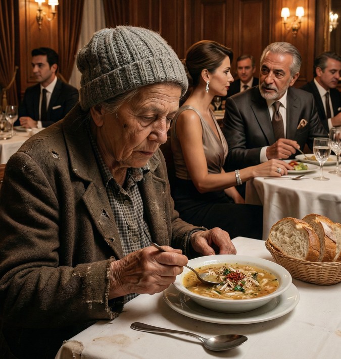 Bir gün çok şık bir restorana yaşlı, fakir bir kadın geldi. Üstünde eski bir palto, ayakkabıları da eskimişti.
