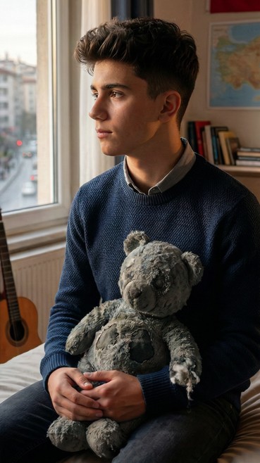 O akşam eve döndüğümde Can salonda oturuyordu. Ayı yine kollarındaydı.