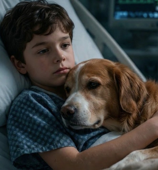 Yatakta zayıf, solgun bir çocuk yatıyordu. Nefesi düzensizdi, kolu serumlara bağlıydı. Yüzü… bir çocuğa ait olmaması gereken kadar yorgundu. Ama asıl dikkatimi çeken şey yanında yatan köpekti.